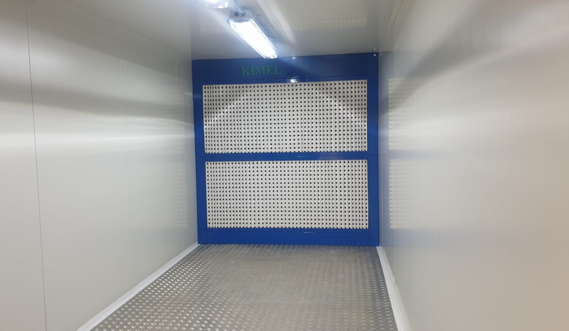 Mobile container paint shop suitable for installation inside or outside the production hall.